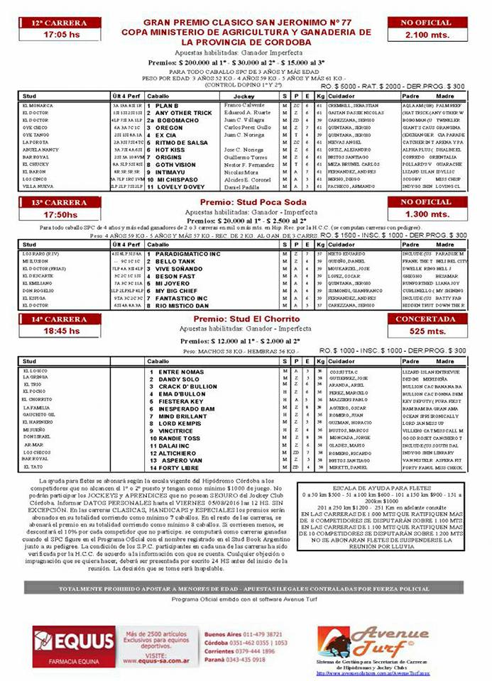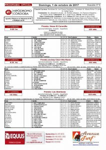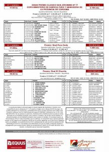 El próximo domingo 1º de octubre está prevista la Reunión N°8 del año en el Hipódromo Córdoba, la 77º Edición del Gran Clásico San Jerónimo. A continuación ponemos a disposición para su consulta, El PROGRAMA OFICIAL: