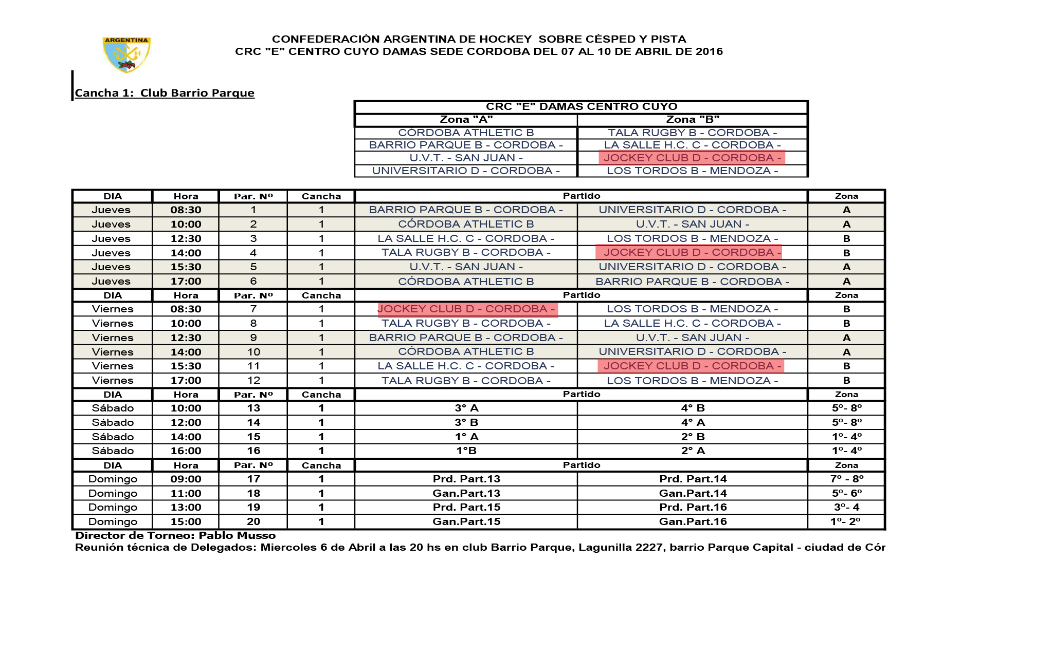 Desde ya están todos invitados a los partidos a jugarse en la cancha de Club Barrio Parque.
