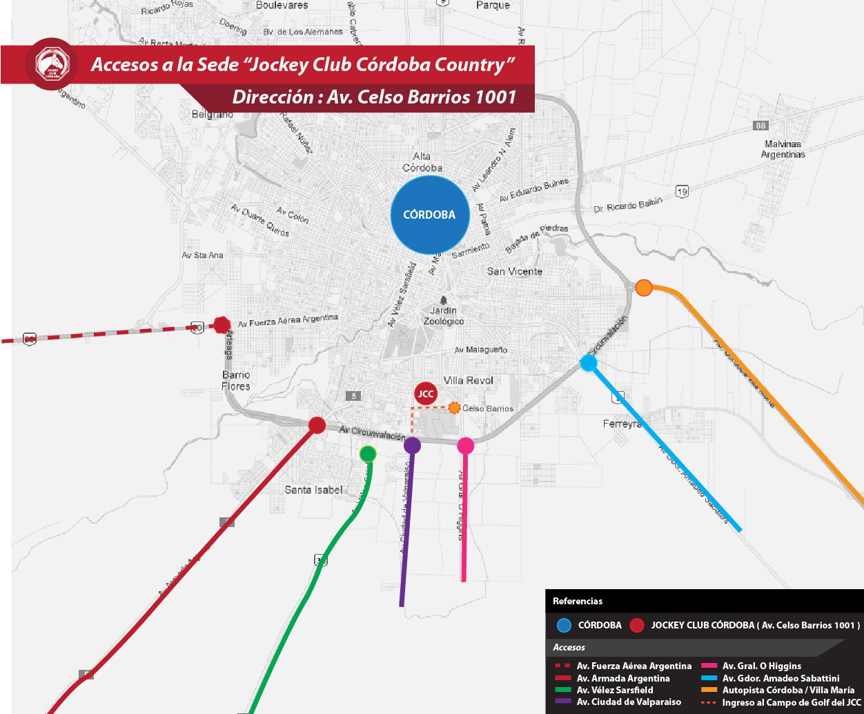 Dirección – Golf y Driving Range: Av. Celso Barrios Nº 1101, Bº Jardín, Ciudad de Córdoba.