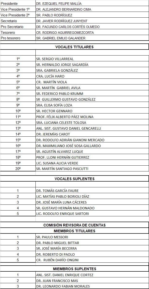 Con fecha el 25 de abril del corriente año se realizó el sorteo de prelación establecido estatutariamente, proclamando esta Junta Electoral como autoridades del JOCKEY CLUB CORDOBA por el período 2022-2025 las siguientes: Hacer Comentario Cancelar RespuestaHaz login para poder hacer un comentario