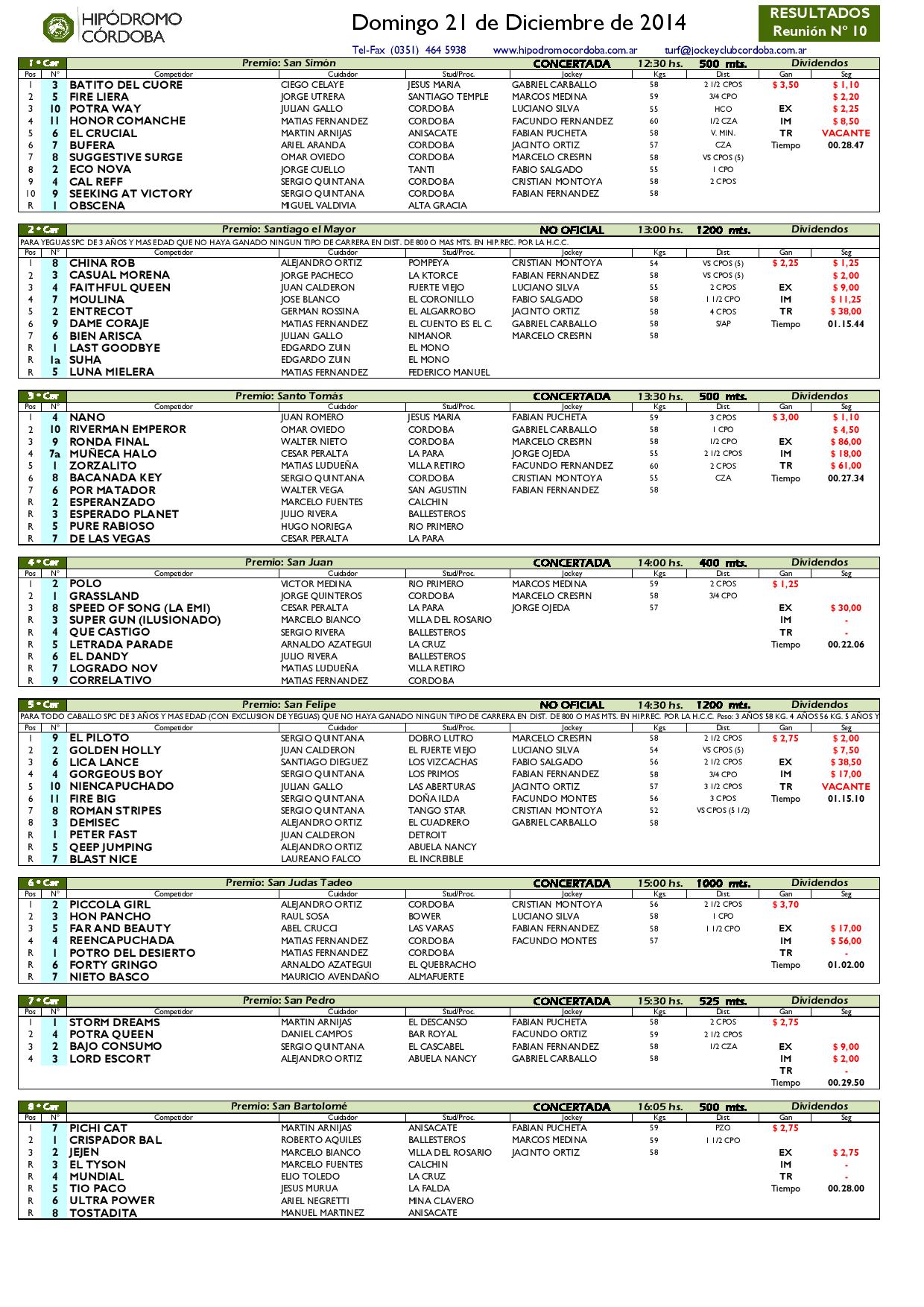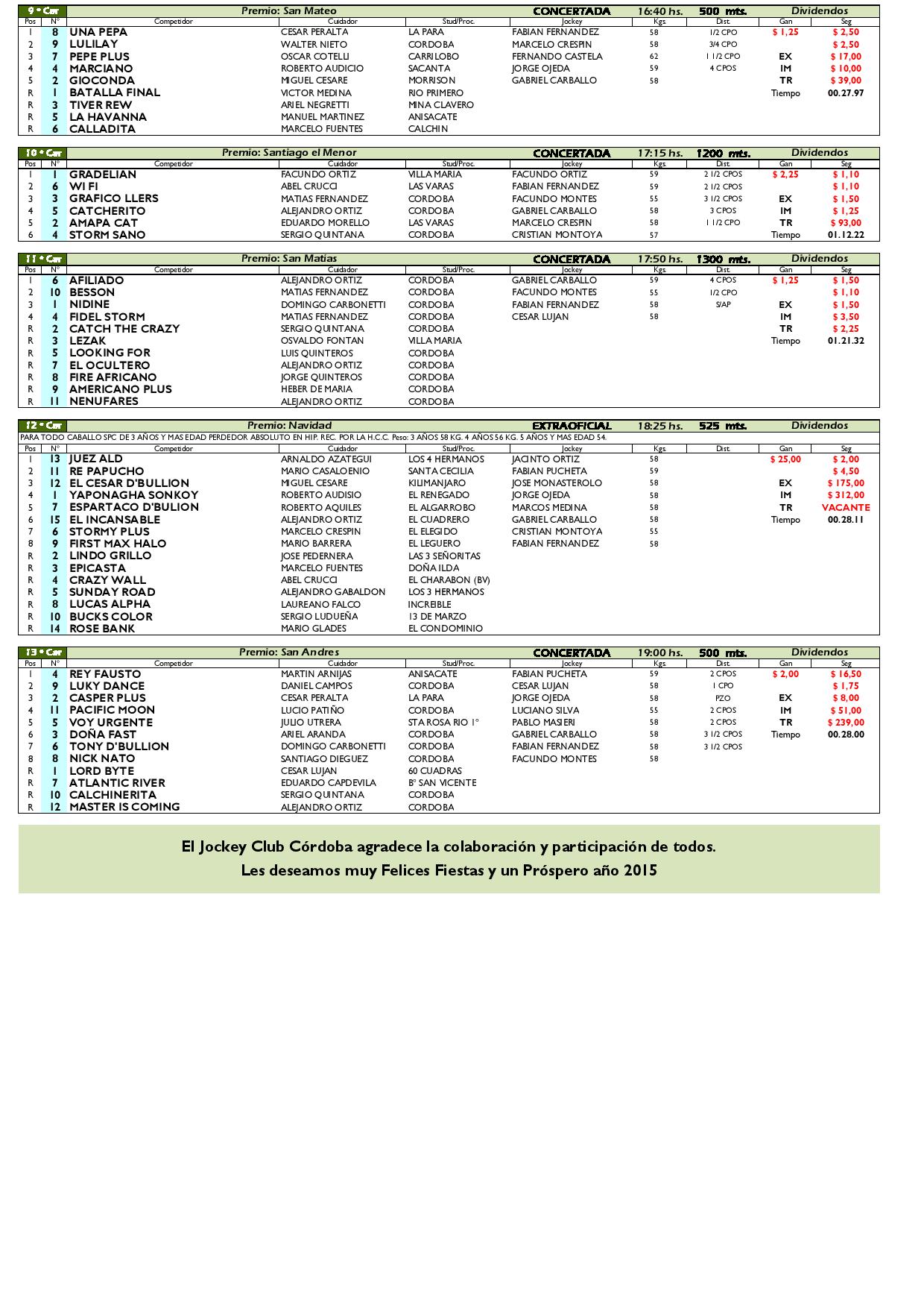 Este domingo 21 de diciembre se disputó la última reunión del Hipódromo Córdoba, a continuación los resultados finales: Hacer Comentario Cancelar RespuestaHaz login para poder hacer un comentario