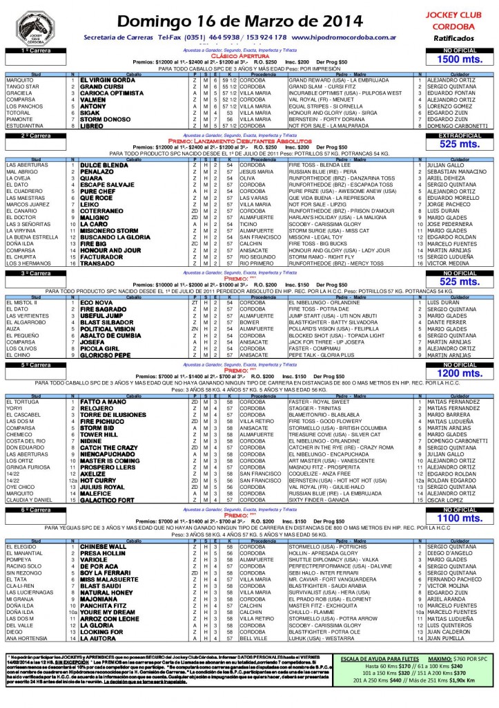 Ratificados Domingo 16 de Marzo 11/03/2014 Hipódromo Córdoba, Novedades Hacer Comentario Cancelar RespuestaHaz login para poder hacer un comentario