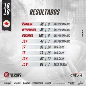 A continuación, pueden ver la tabla resultados y las imágenes del partido de la «19A» contra «Universitario», donde el JCC ganó 47 a 7: