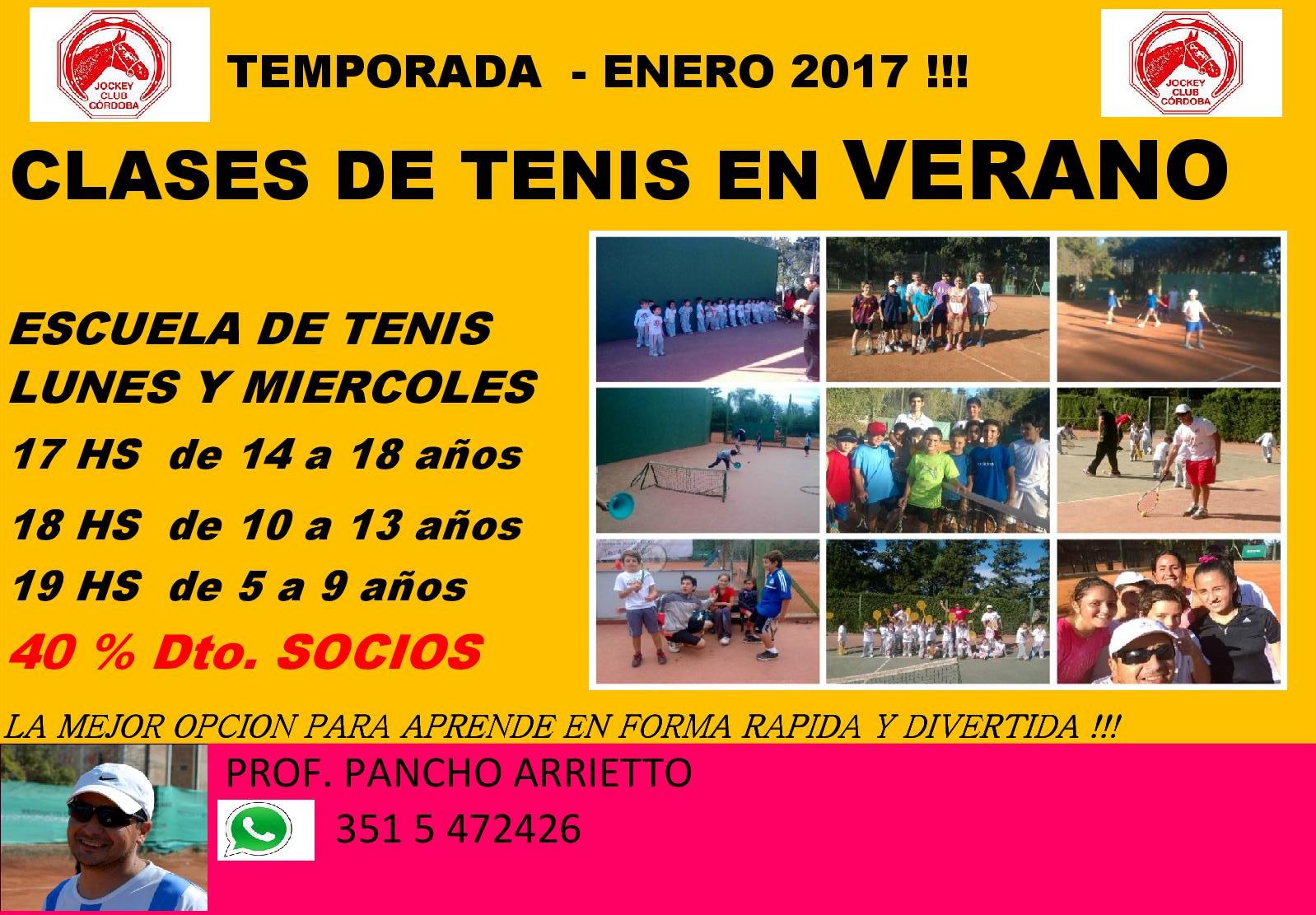 Estamos próximos a iniciar la pretemporada 2017 de la Escuela de Tenis, dirigida por los profesores Javier Nalbandian y Francisco Arrieto, y es el momento ideal para comenzar a tomar clases de aprendizaje o perfeccionamiento.